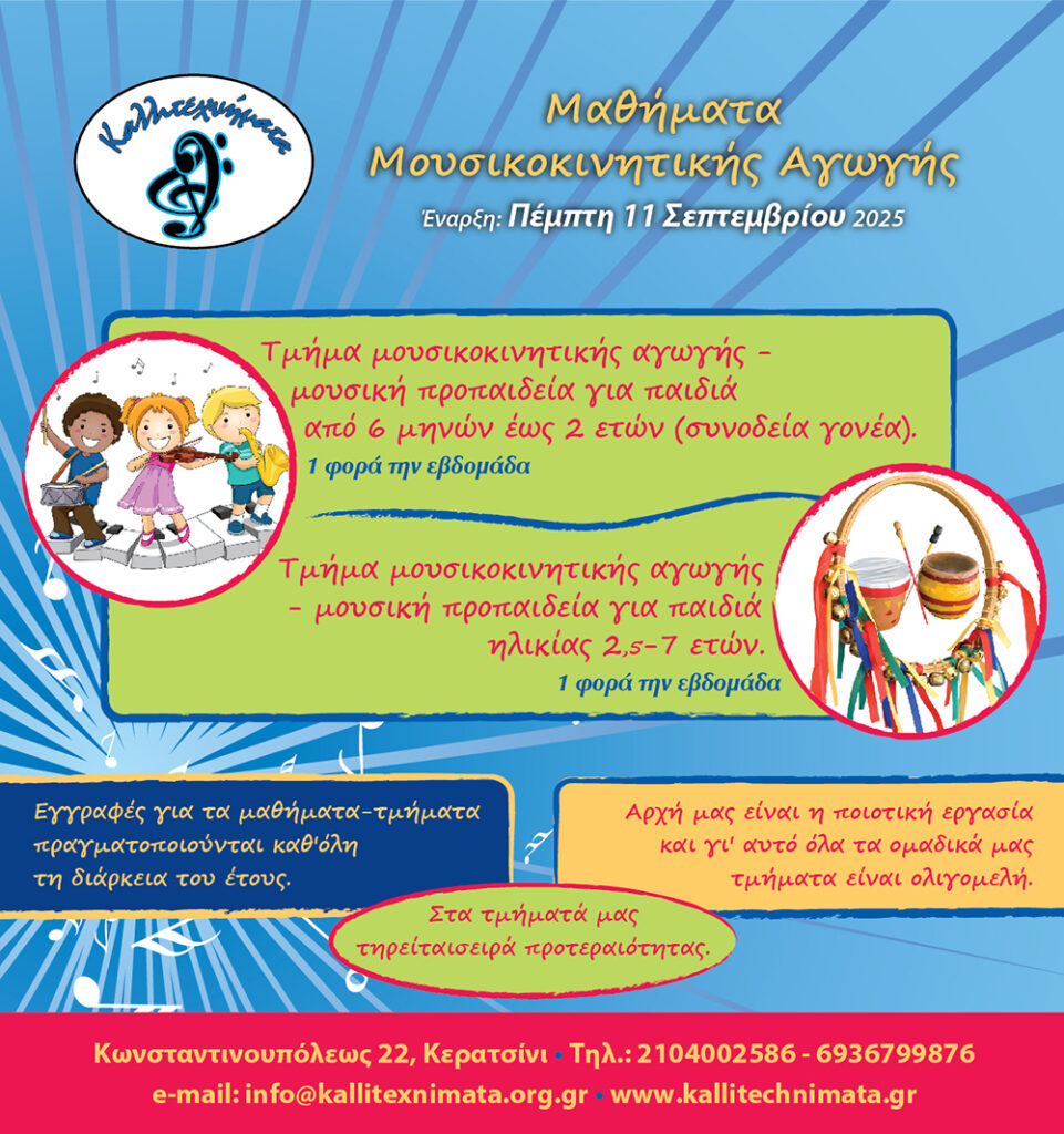 Δείτε τις λεπτομέρειες των τμημάτων μας και κρατήστε μία θέση για το παιδί σας, κάνοντας την αίτηση σας τώρα 👉 https://kallitechnimata.gr/epikoinwnia/