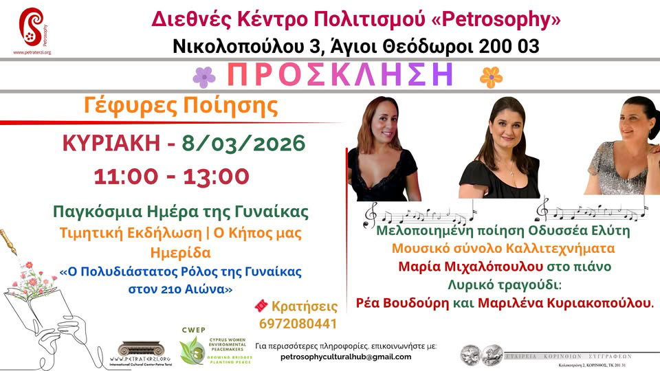 Για περισσότερες πληροφορίες, επικοινωνήστε με: petrosophyculturalhub@gmail.com